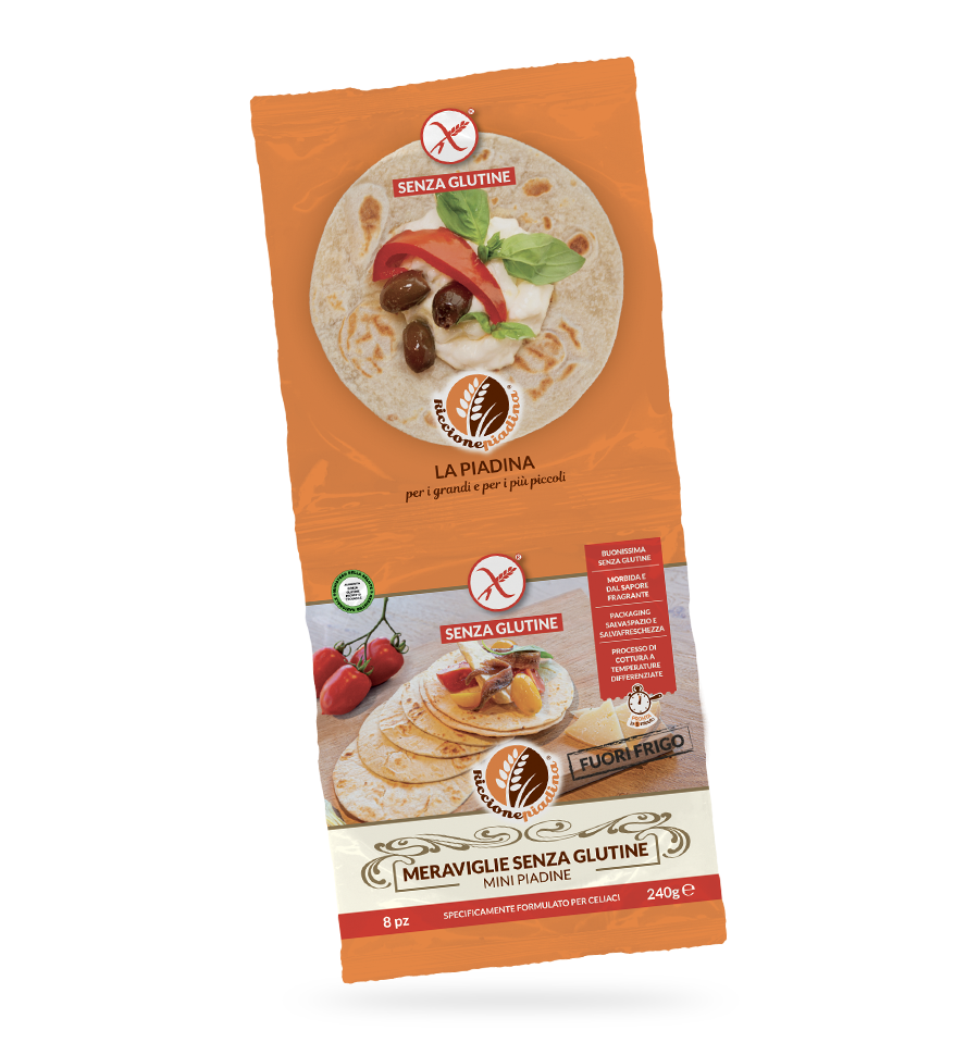 La nostra piadina senza glutine! Stesso gusto della piadina tradizionale ma senza glutine, adatta a tutti anche a chi segue un’alimentazione vegetariana o vegana.
